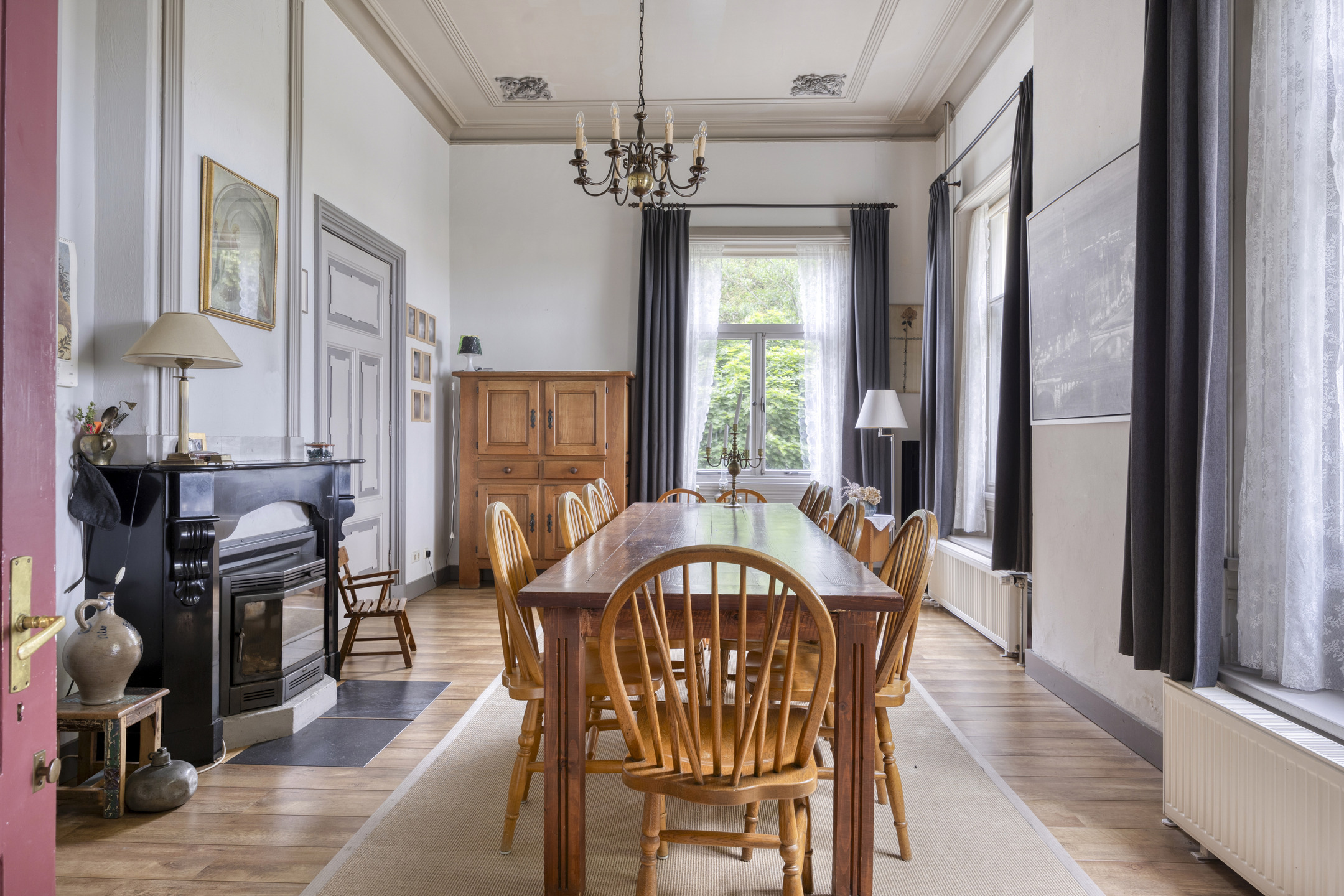 Deze gemeentelijke monumentale pastorie ademt sfeer en karakter. Het solide en goed onderhouden pand is rijk aan originele stijlkenmerken zoals hoge ornamentenplafonds, klassieke paneeldeuren en sierlijke details die je meenemen naar vervlogen tijden.