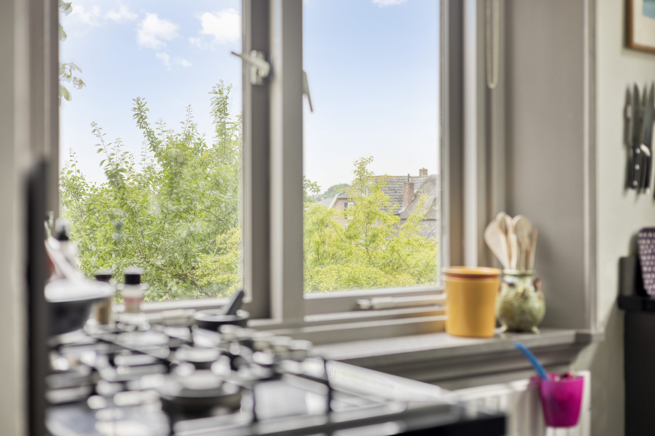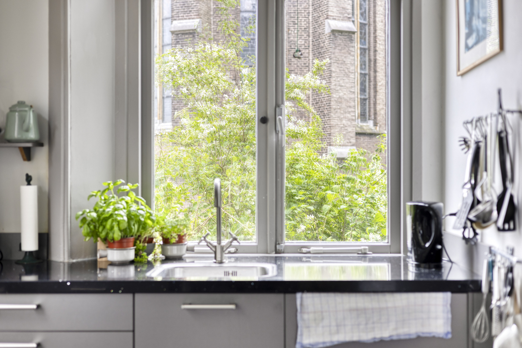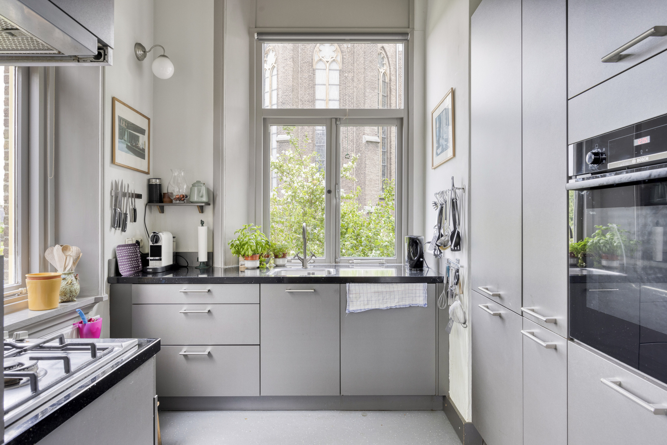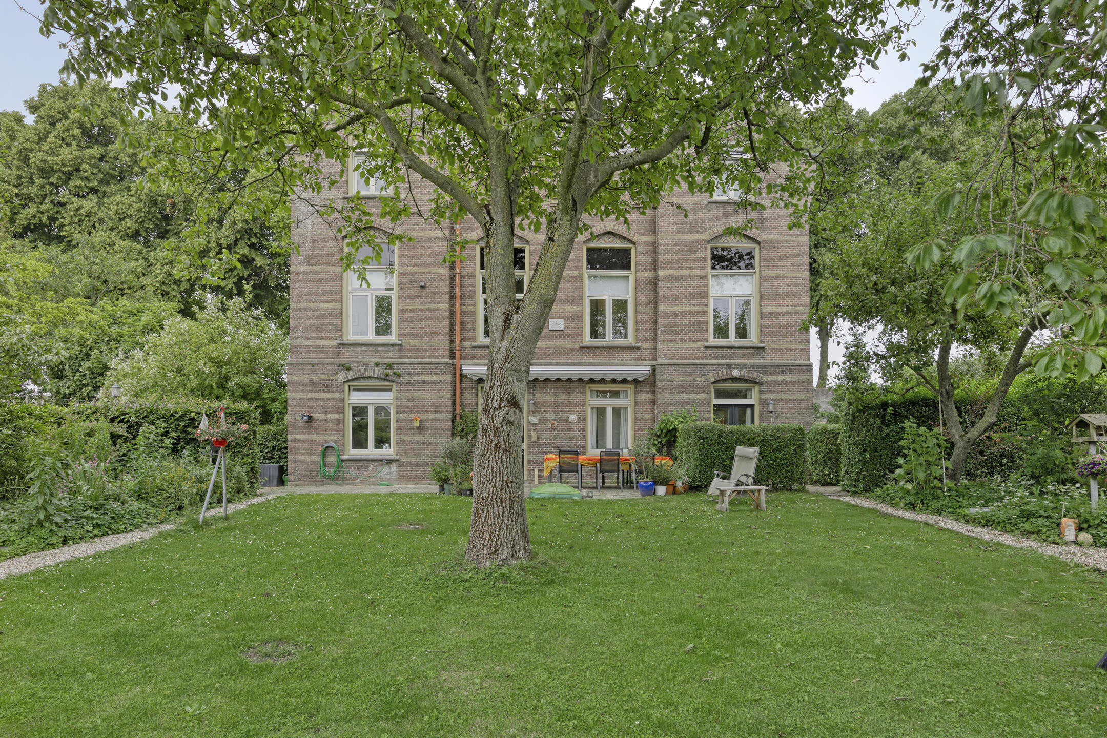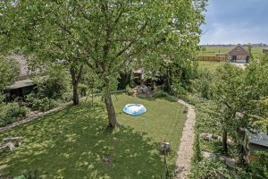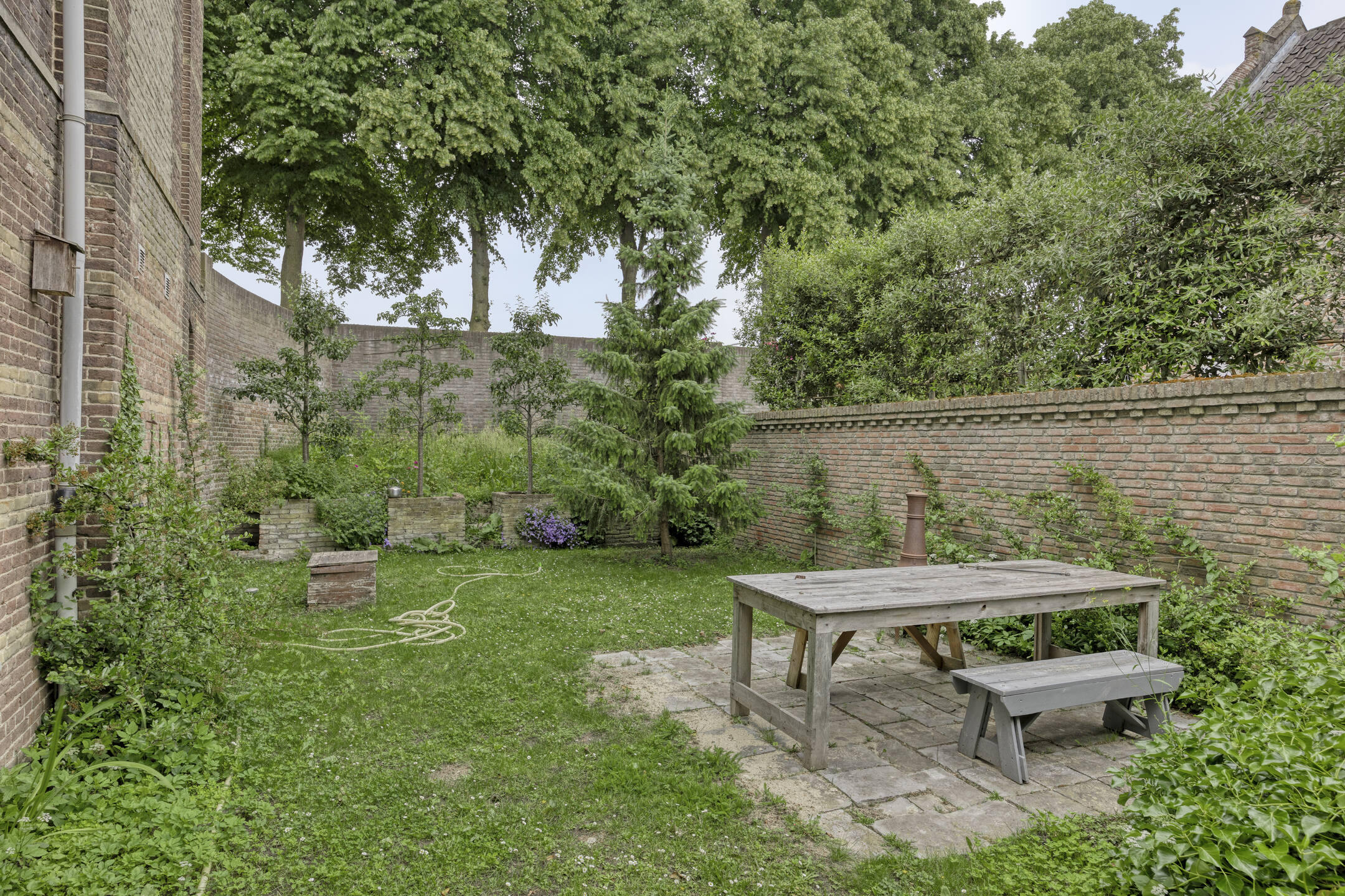 Achter het huis wacht een zonnige, heerlijke tuin die doet denken aan het Franse platteland – een oase van rust en privacy, grenzend aan het souterrain en perfect voor lange avonden buiten.