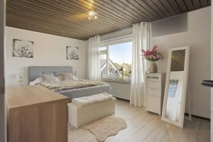 Op de eerste verdieping bevinden zich drie slaapkamers, badkamer en toilet. Twee slaapkamers zijn royaal van formaat en de derde kamer is ideaal als kinder-, werk- of logeerkamer.
