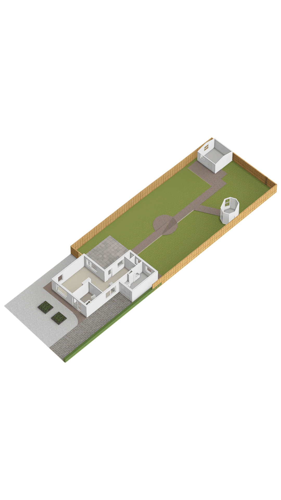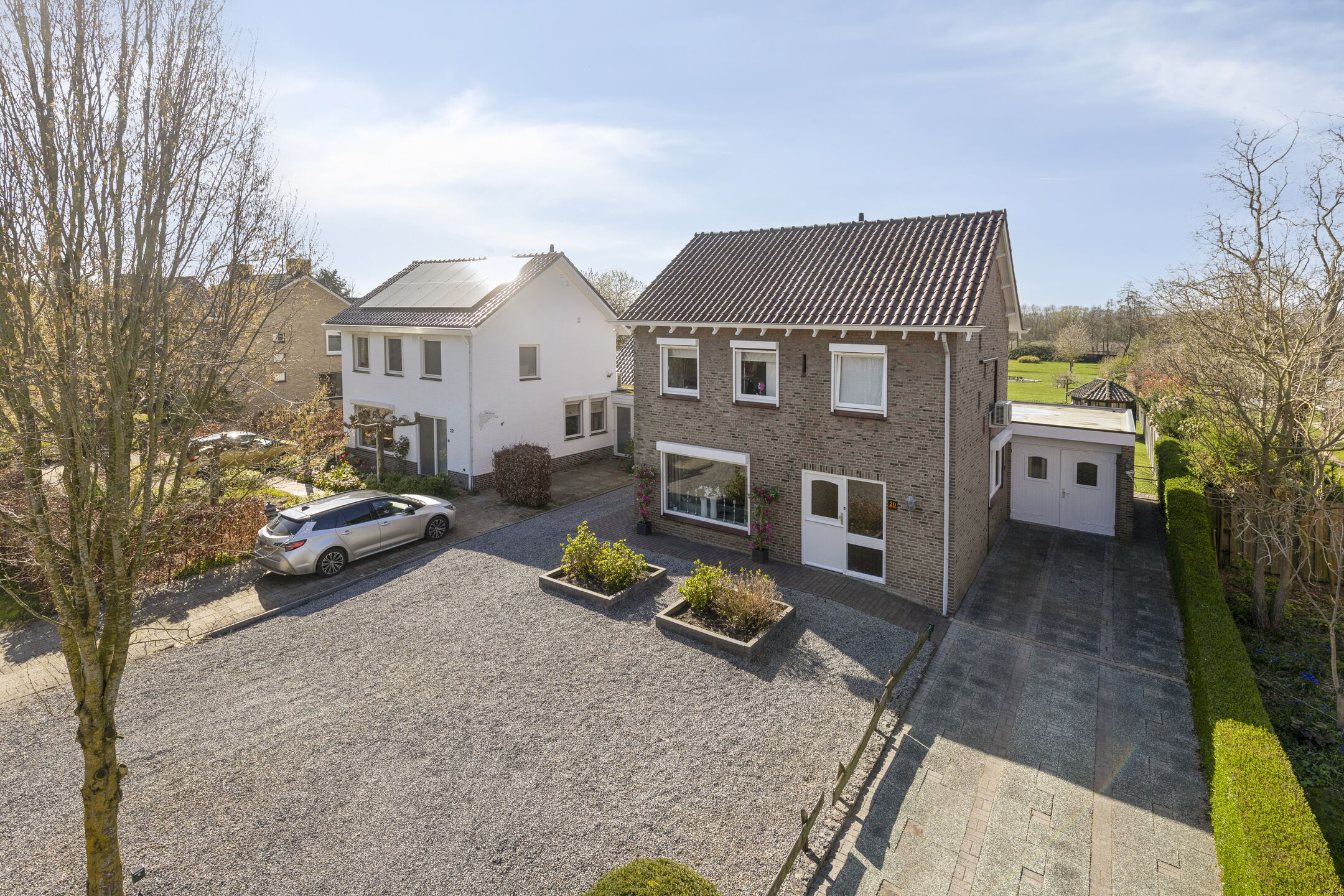 Aan de voorzijde beschikt de woning over een royale oprit met parkeergelegenheid voor meerdere auto’s op eigen terrein. Via de zijkant is de achtertuin gemakkelijk bereikbaar.