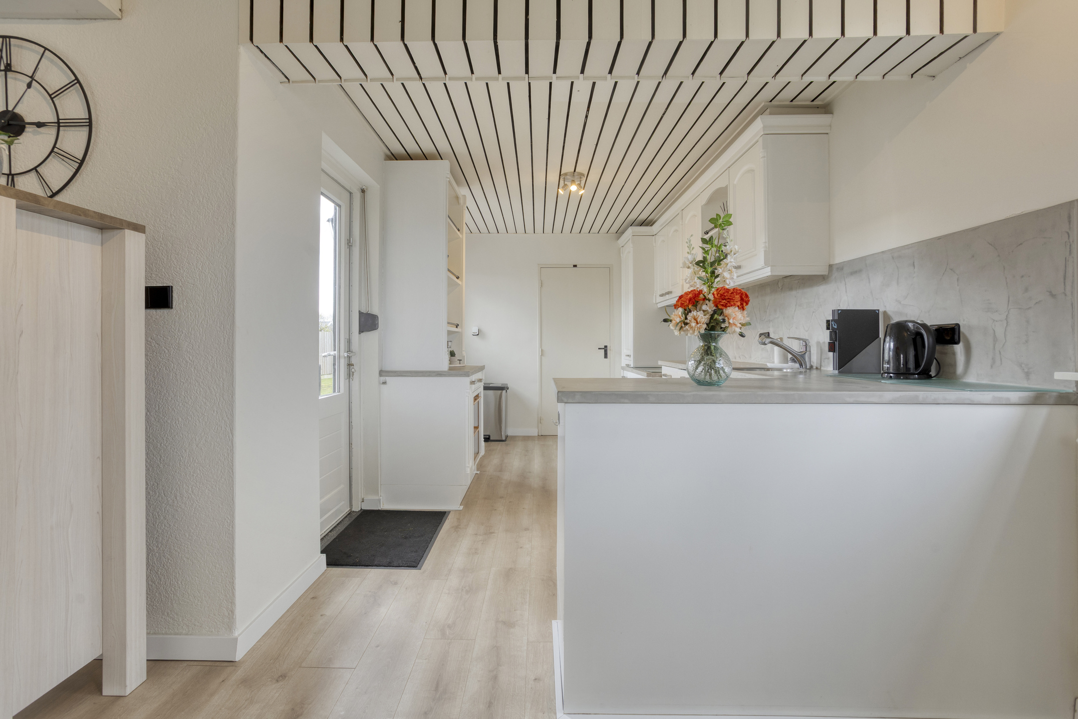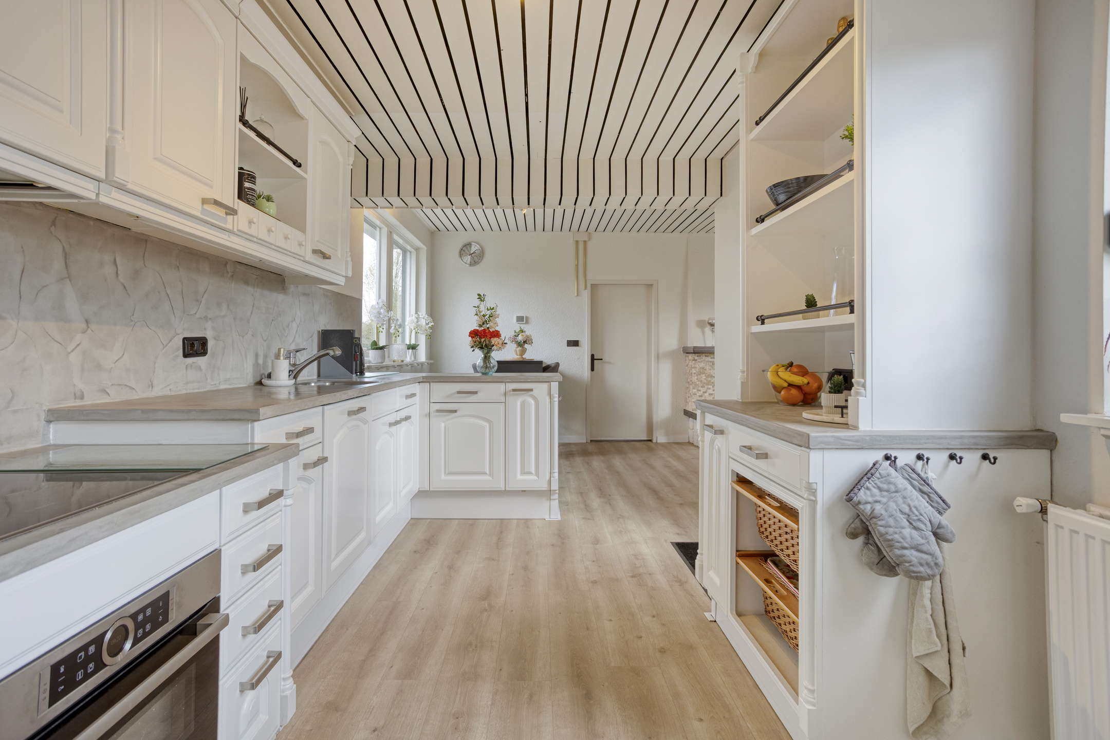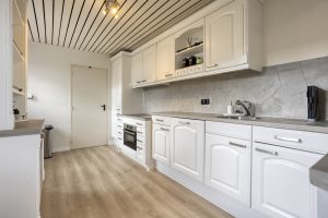 – Royale woonkeuken in lichte kleurstelling met veel kastruimte en een praktische opstelling. De keuken dateert uit 2008, is in 2020 gerenoveerd en voorzien van diverse inbouwapparatuur, waaronder een vernieuwde oven (2023) en vaatwasser (2018).