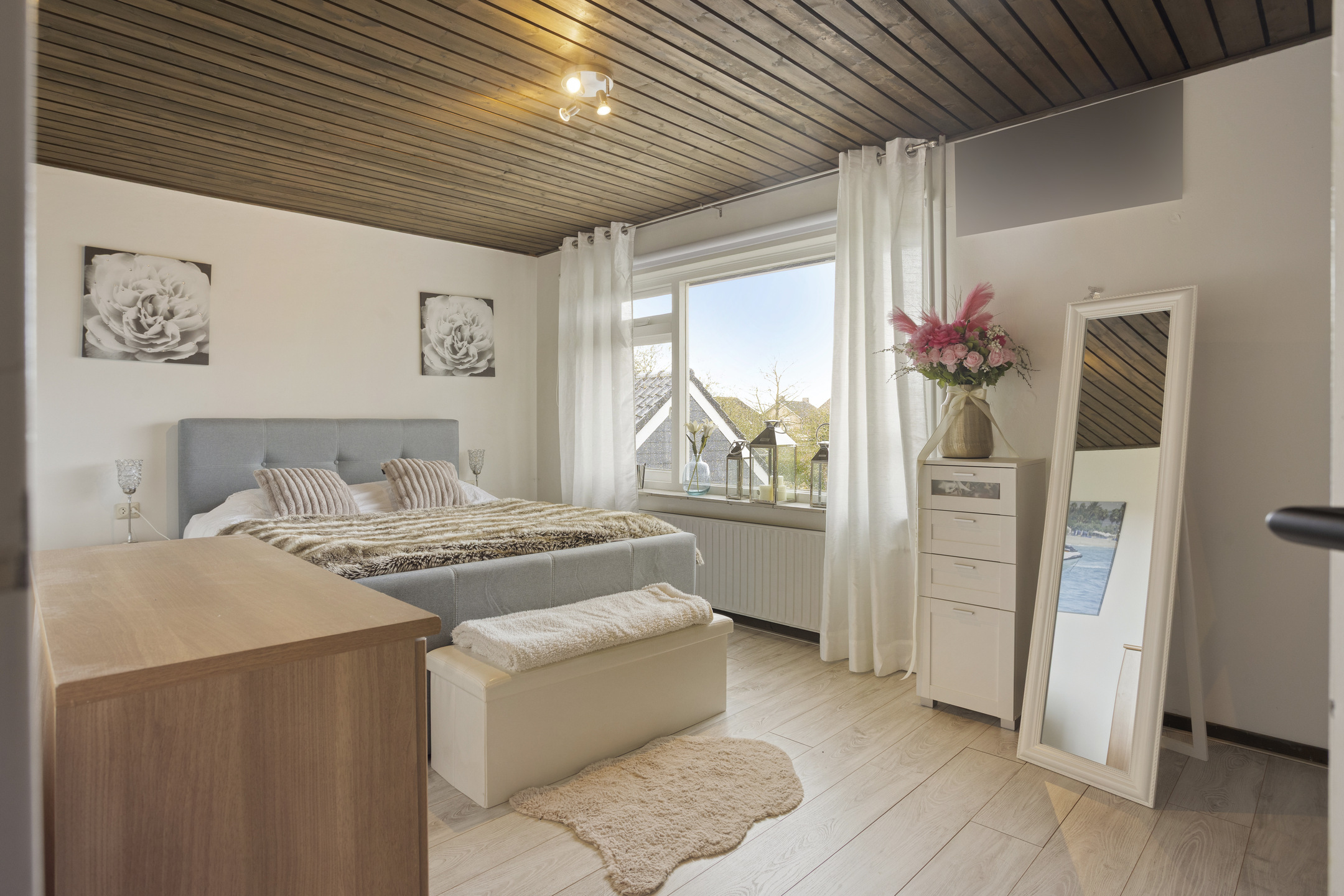 – Sfeervolle en opvallend lichte woonkamer met grote raampartijen, prettig zicht op de tuin.
