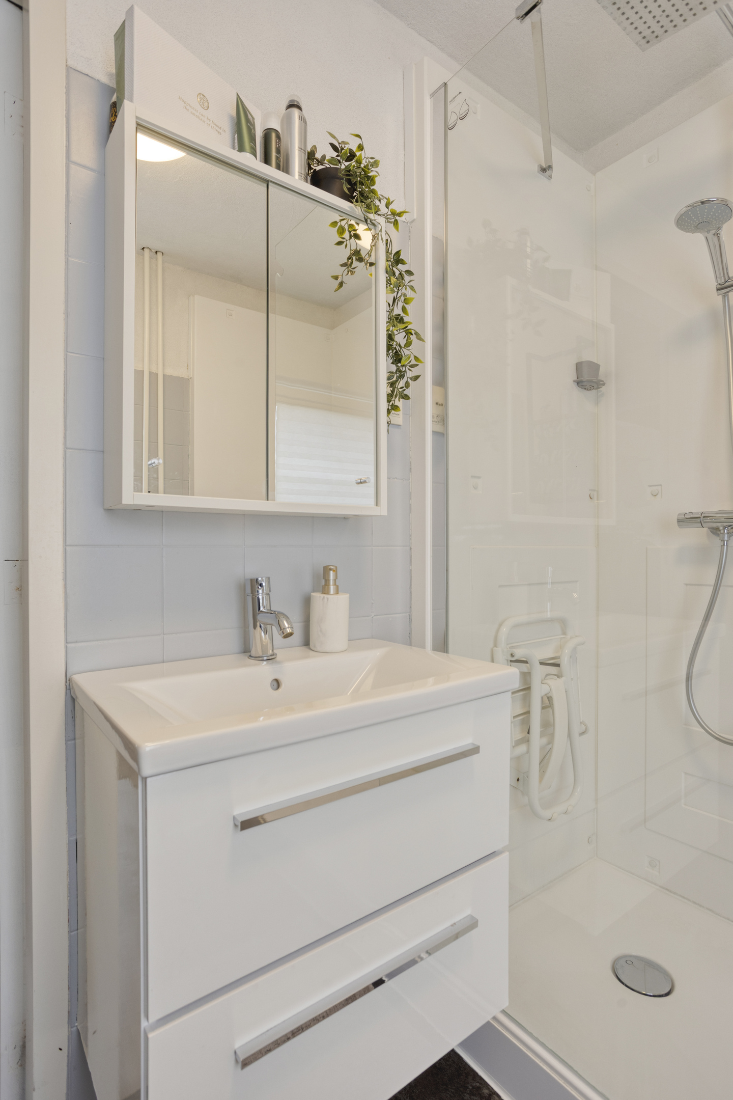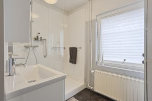 De badkamer is verzorgd uitgevoerd en in 2019 vernieuwd met een nieuwe douche, douchewand en wastafelmeubel. Daarnaast is op deze verdieping een separate toiletruimte aanwezig, wat extra comfort biedt.