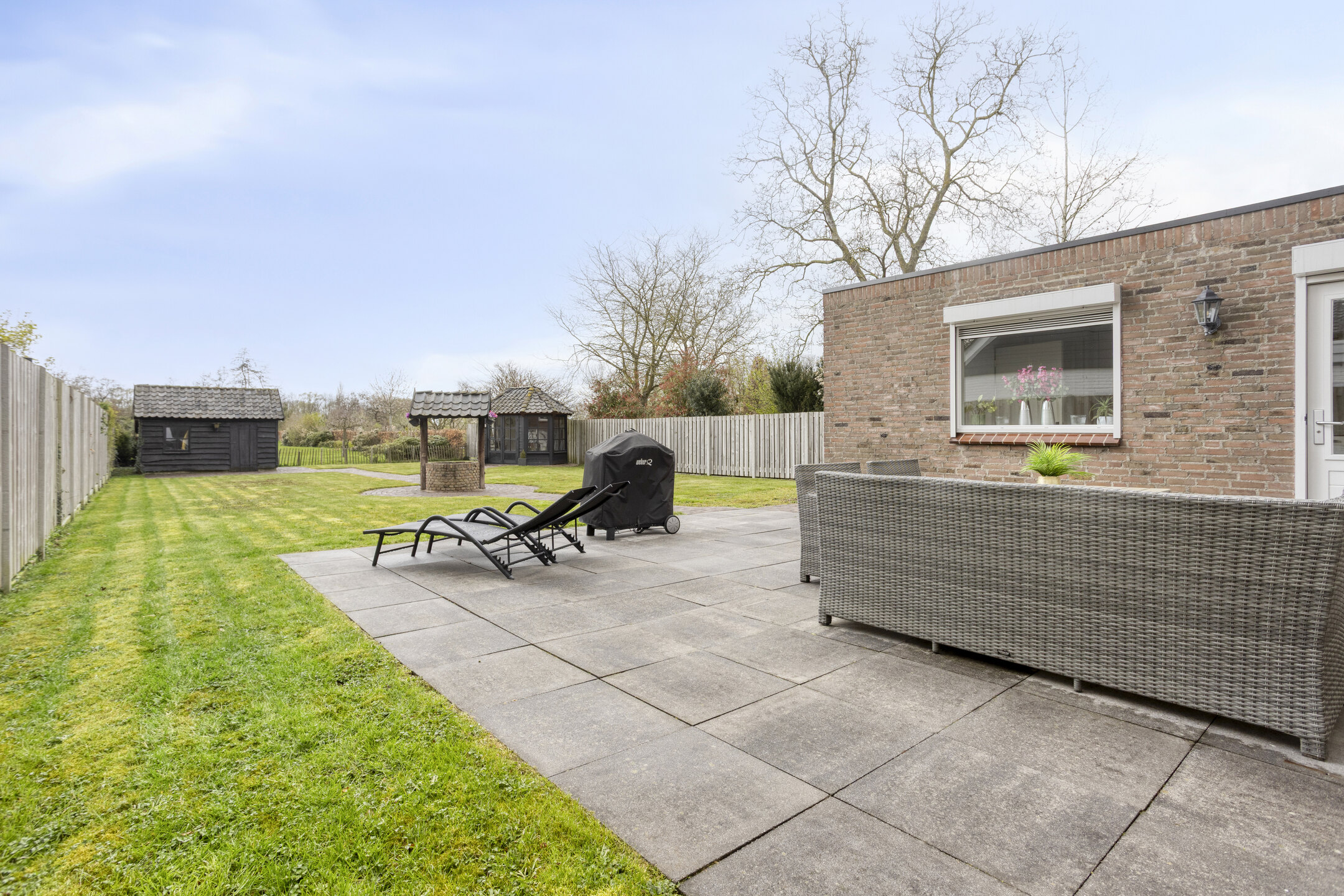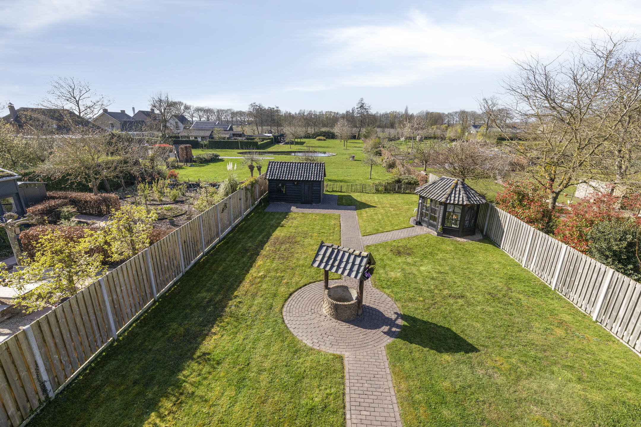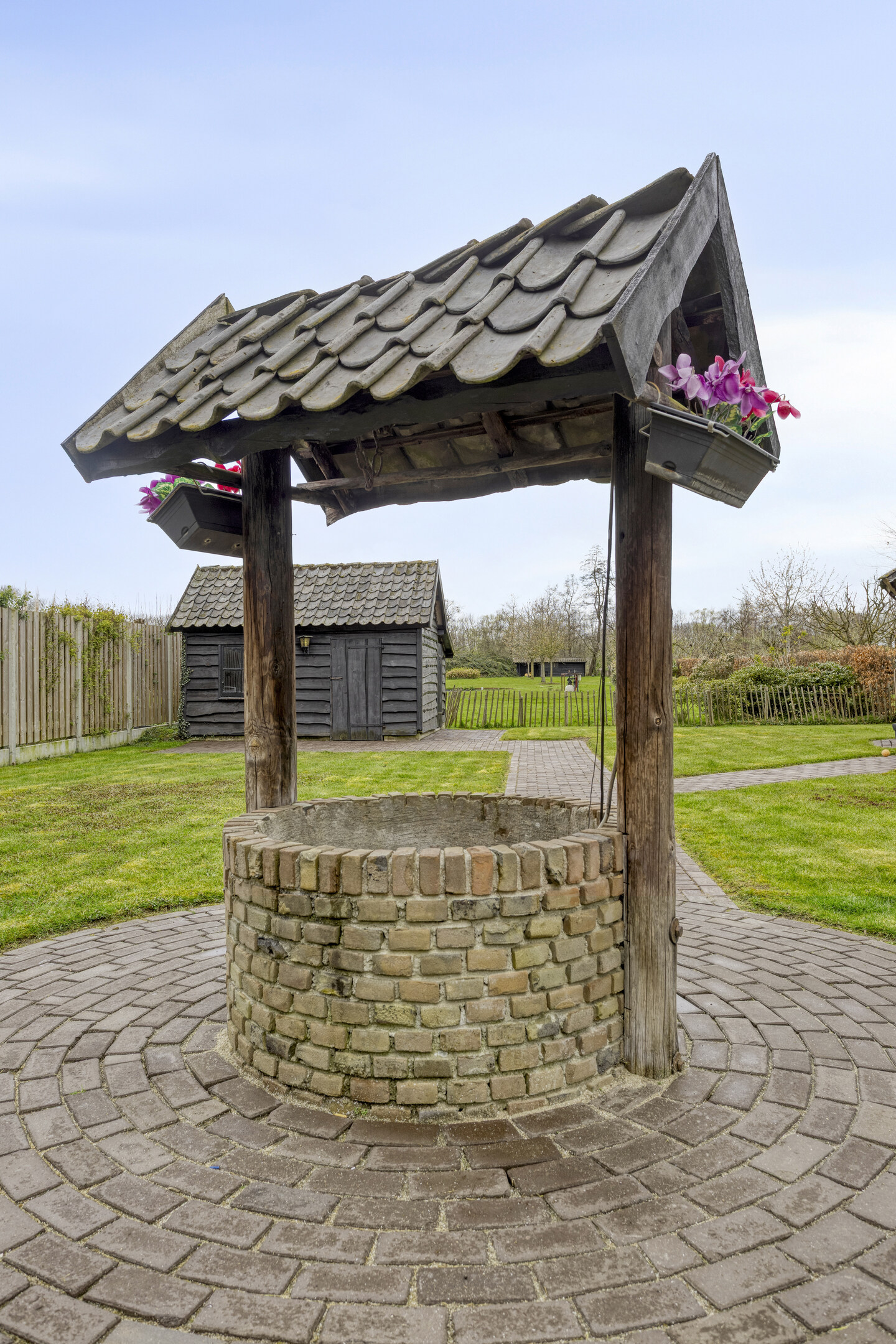 – In de tuin bevinden zich een vrijstaande berging, een sfeervol tuinhuis en een waterput, wat zorgt voor extra sfeer en karakter.