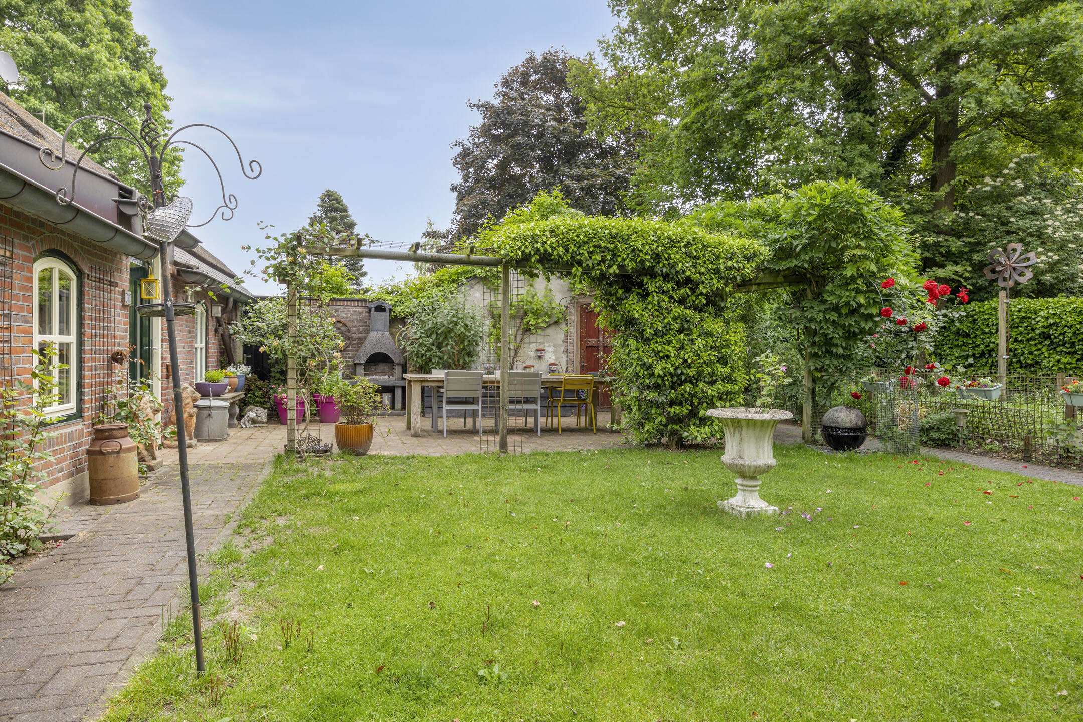 De tuin is met liefde aangelegd en onderhouden, met een perfecte mix van sierlijke elementen, weelderig groen en functionele ruimte. Denk aan fijne zitplekken onder begroeide pergola’s en kleurrijke bloemenborders, die uitnodigen voor lange zomeravonden tafelen met vrienden of familie.