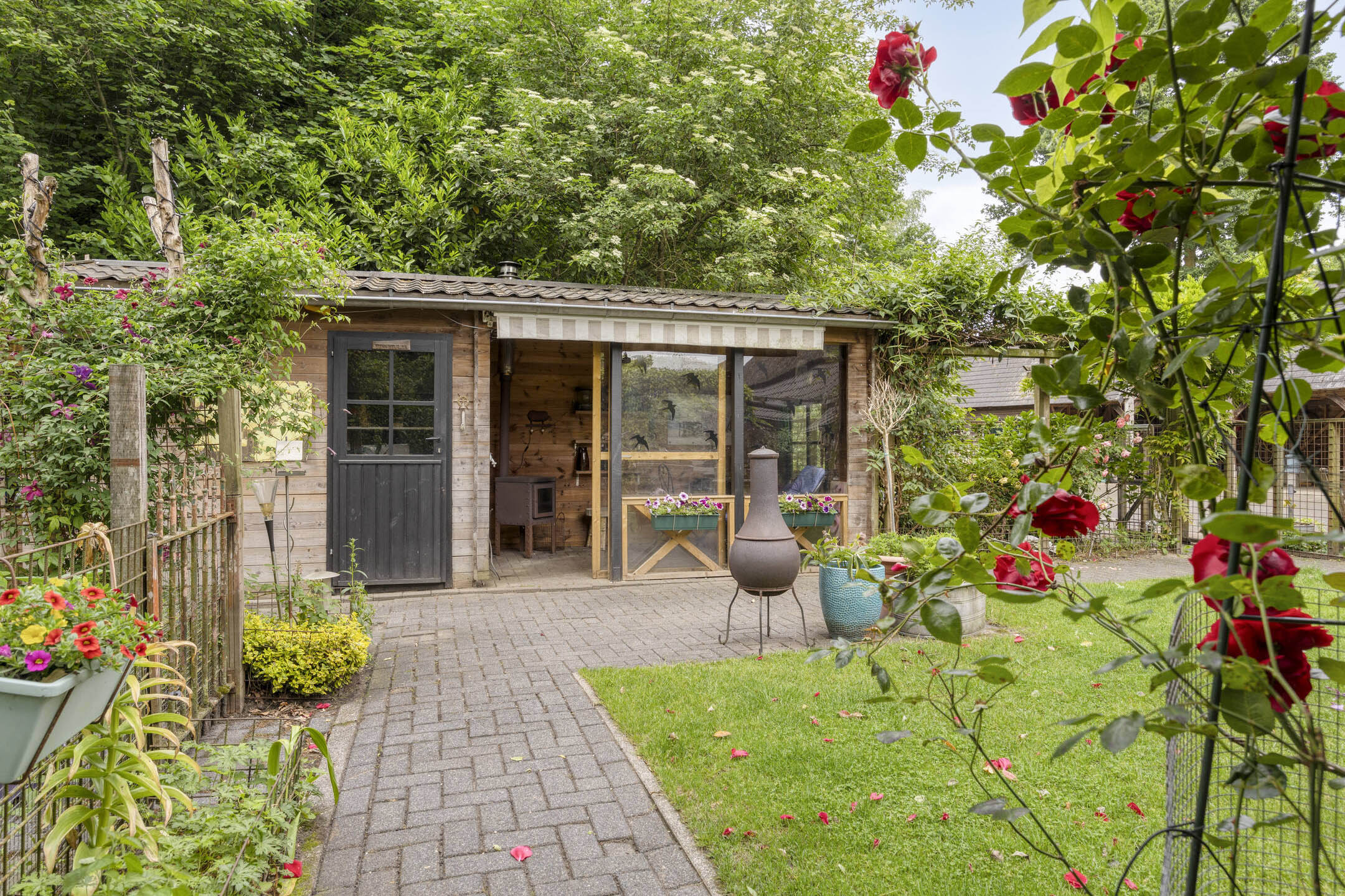 – Liefdevol aangelegde tuin met verschillende terrassen overkappingen en volwassen begroeiing.