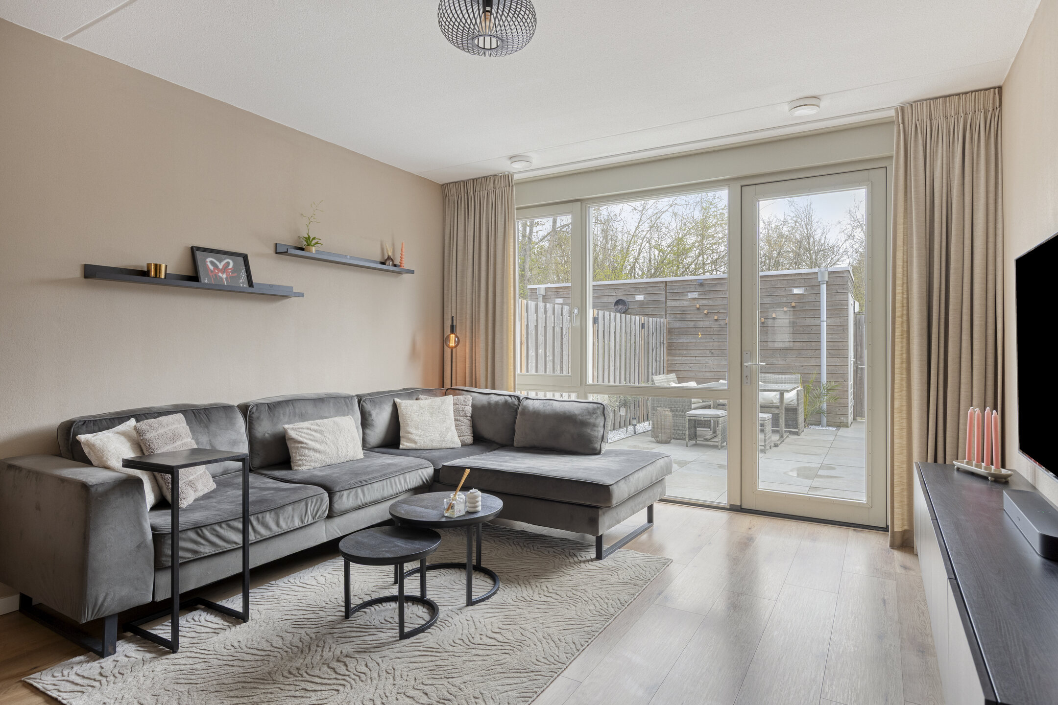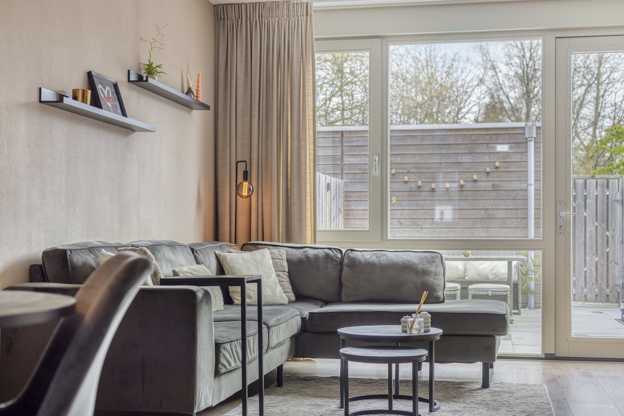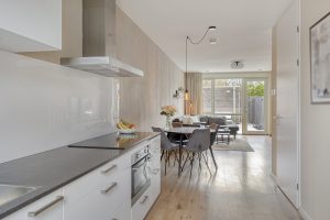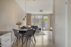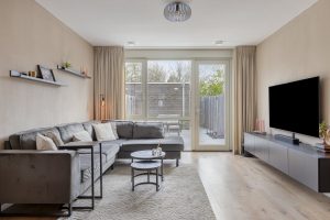 – Tuingerichte woonkamer met veel lichtinval, een prettige mate van privacy en vloerverwarming op de begane grond.