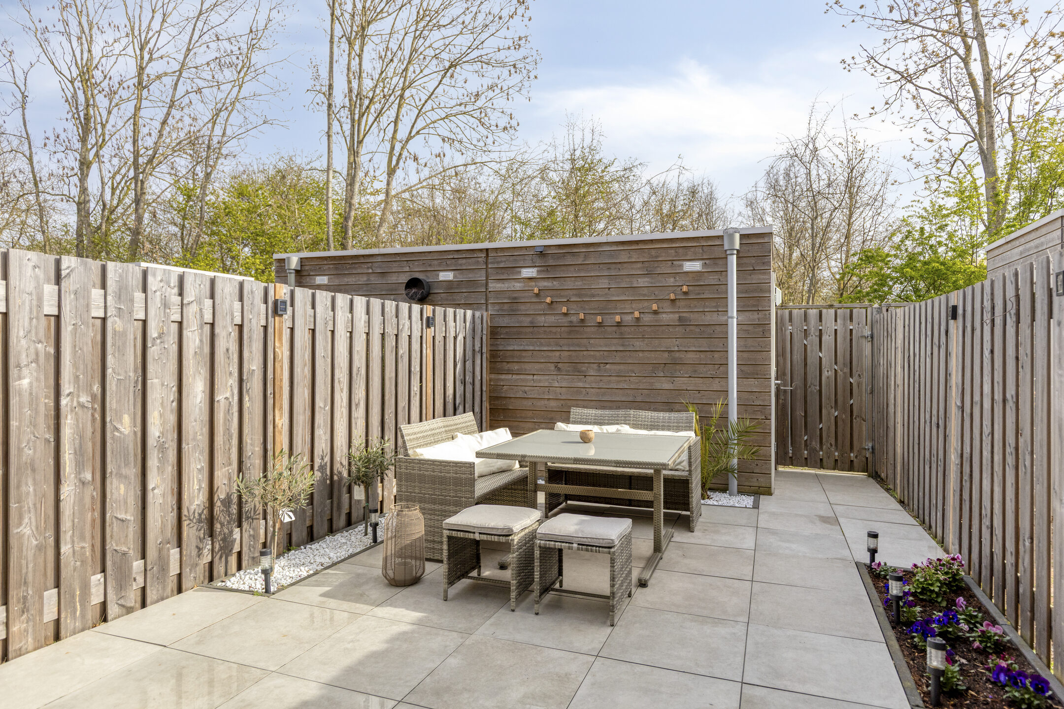 – Fraai aangelegde, onderhoudsvriendelijke achtertuin met achterom.