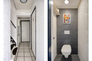 De badkamer bevindt zich op de begane grond en is voorzien van douche, toilet, wastafel en witgoedaansluitingen. De inpandige berging biedt volop ruimte voor fietsen, opslag of jouw toekomstige slaapkamer. Met een eenvoudige aanpassing creëer je hier gelijkvloers wonen.