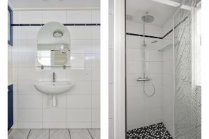 – Badkamer op de begane grond met douche, toilet, wastafel en witgoedaansluitingen.