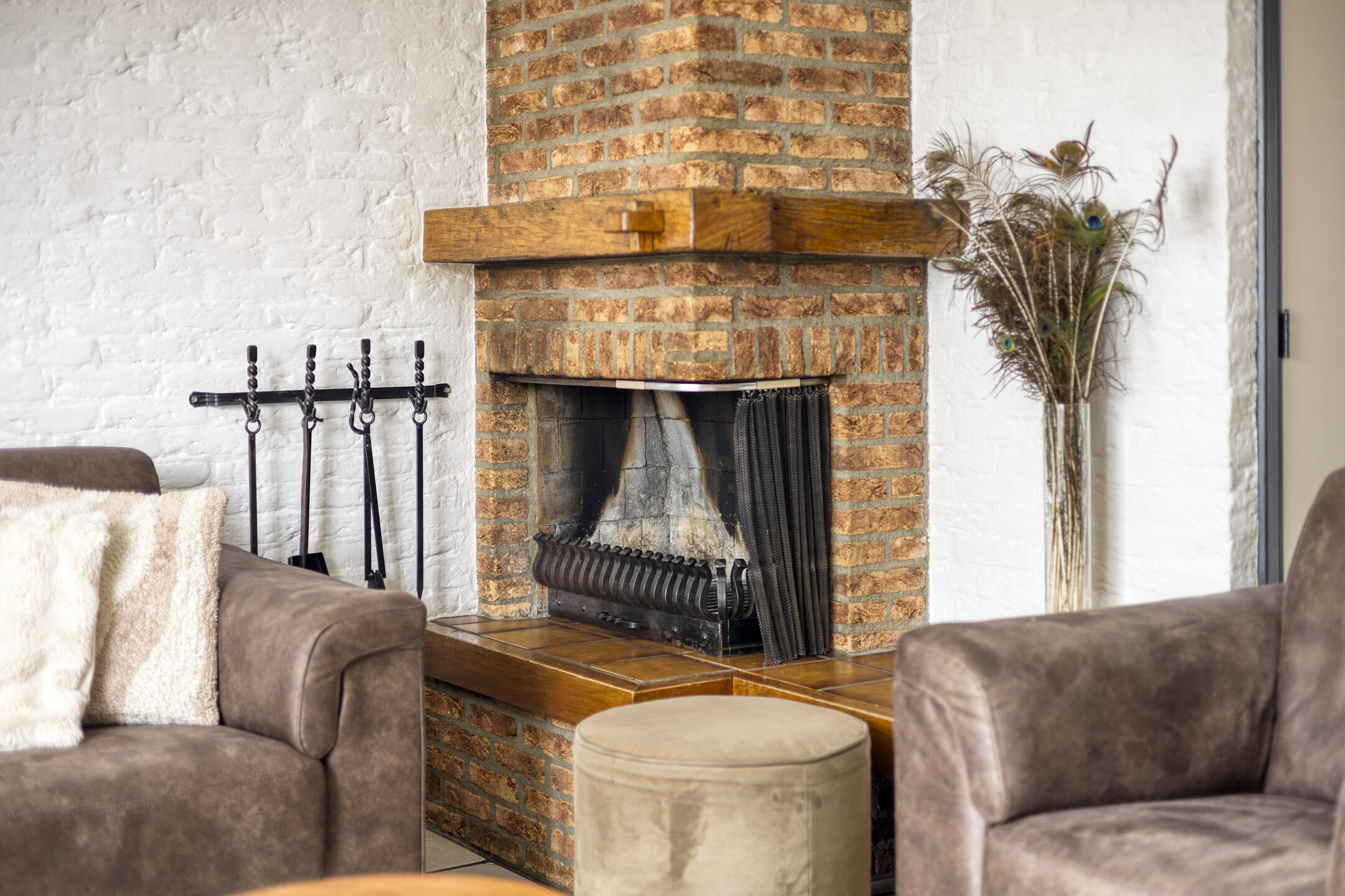 – Sfeervolle open haard in de woonkamer.