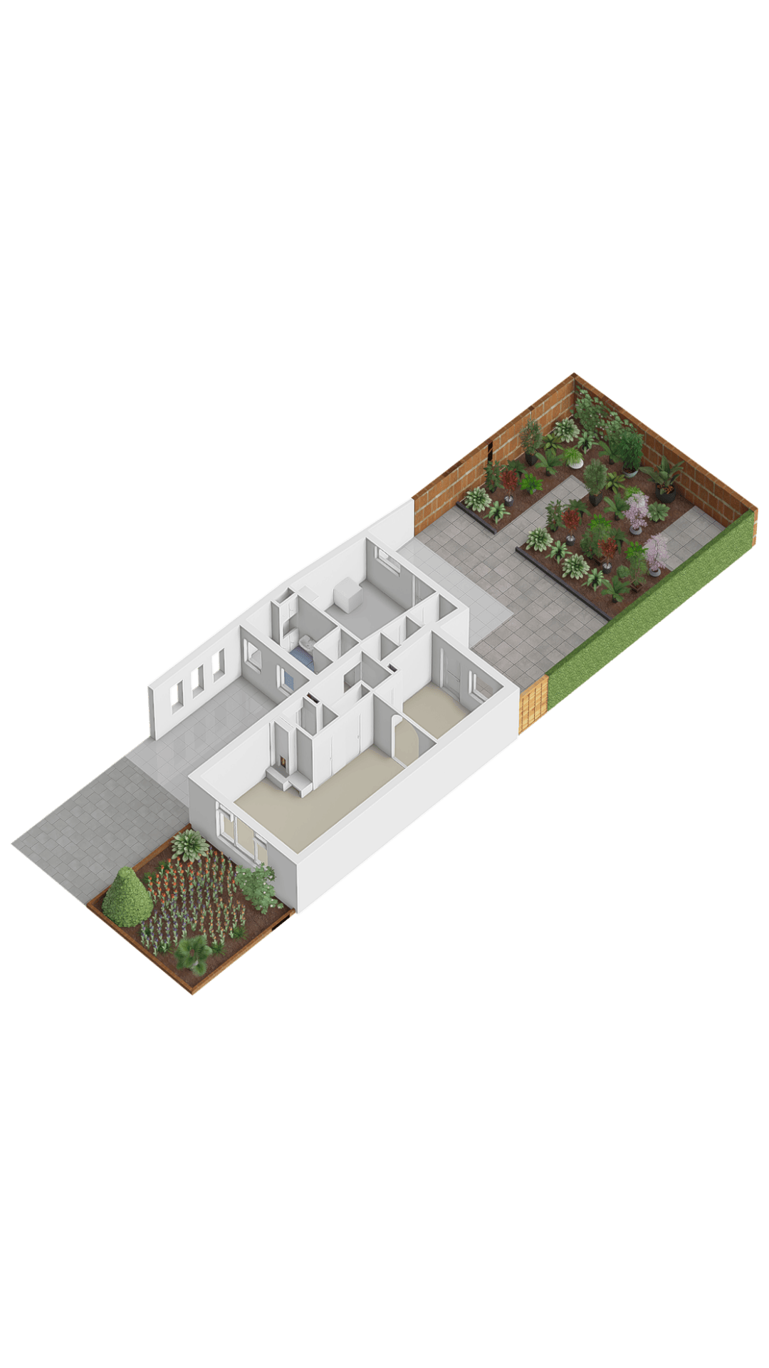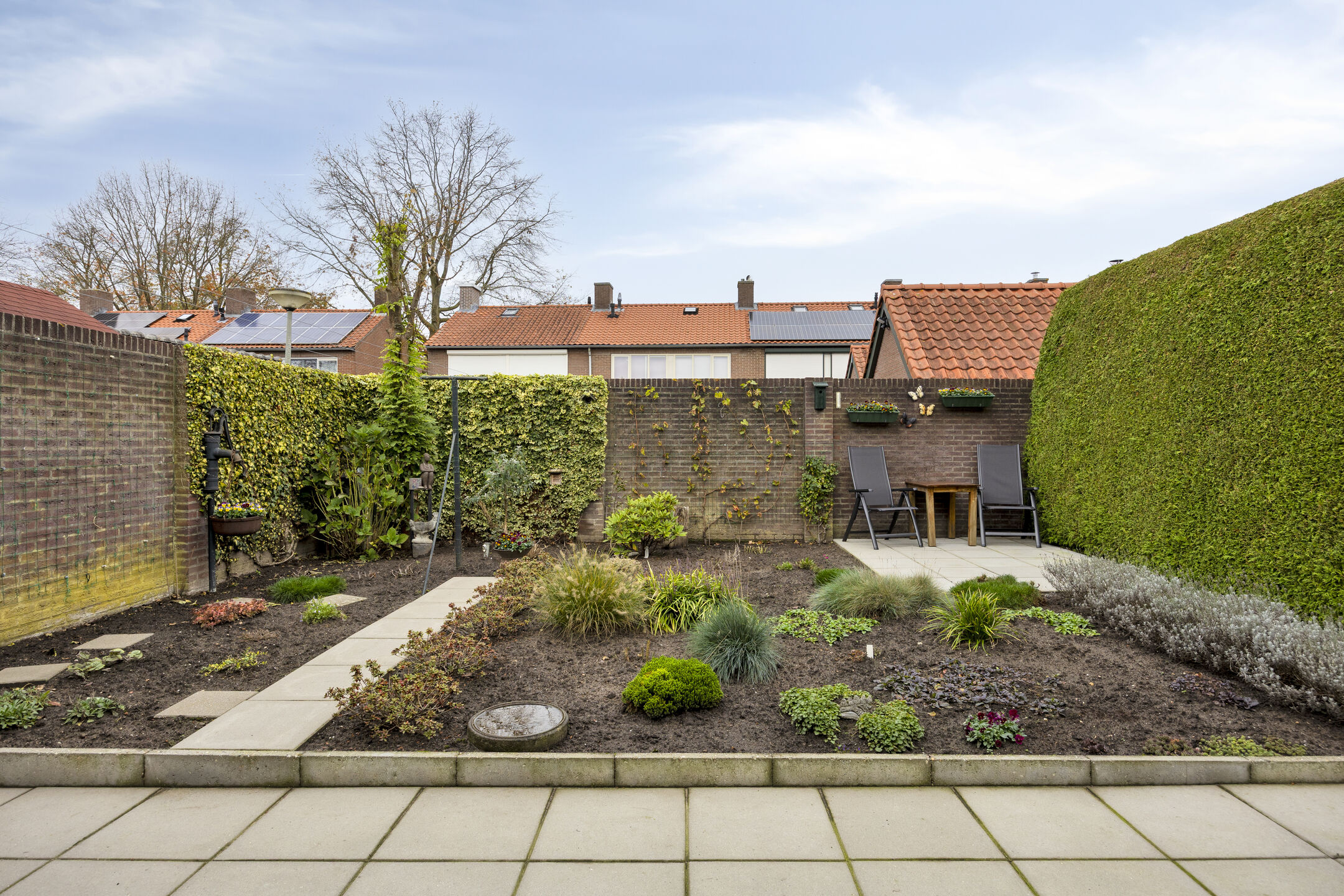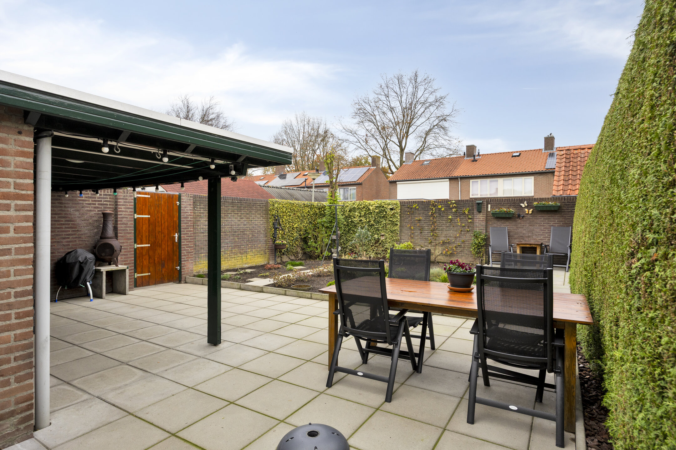 – Onderhoudsvriendelijke achtertuin met ruime overkapping.