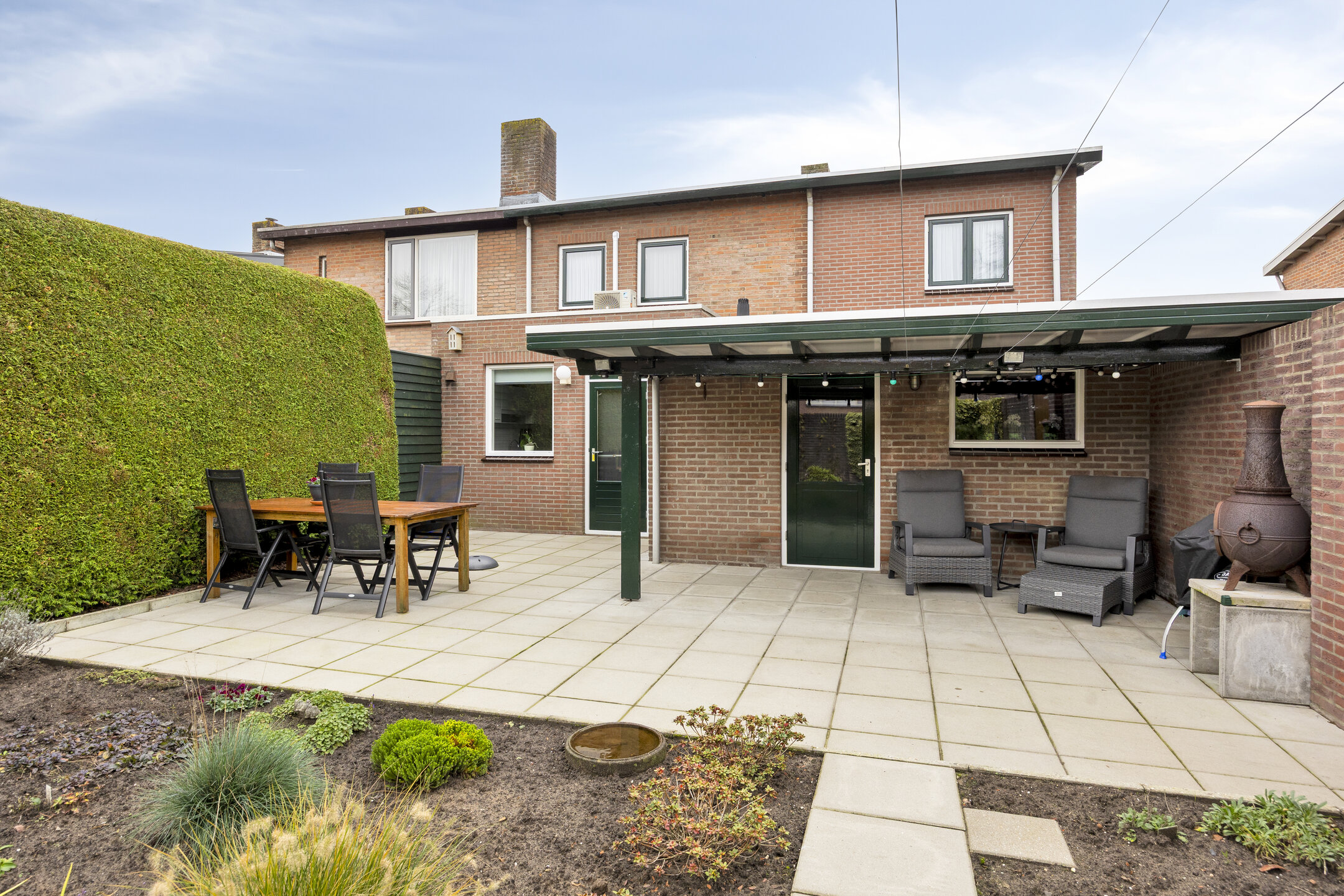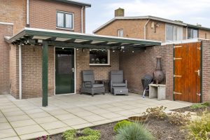 De achtertuin is onderhoudsvriendelijk ingericht, met een overkapping waar je heerlijk beschut zit. De voortuin en oprit met carport geven een nette entree én bieden plek voor minimaal 2 auto’s.