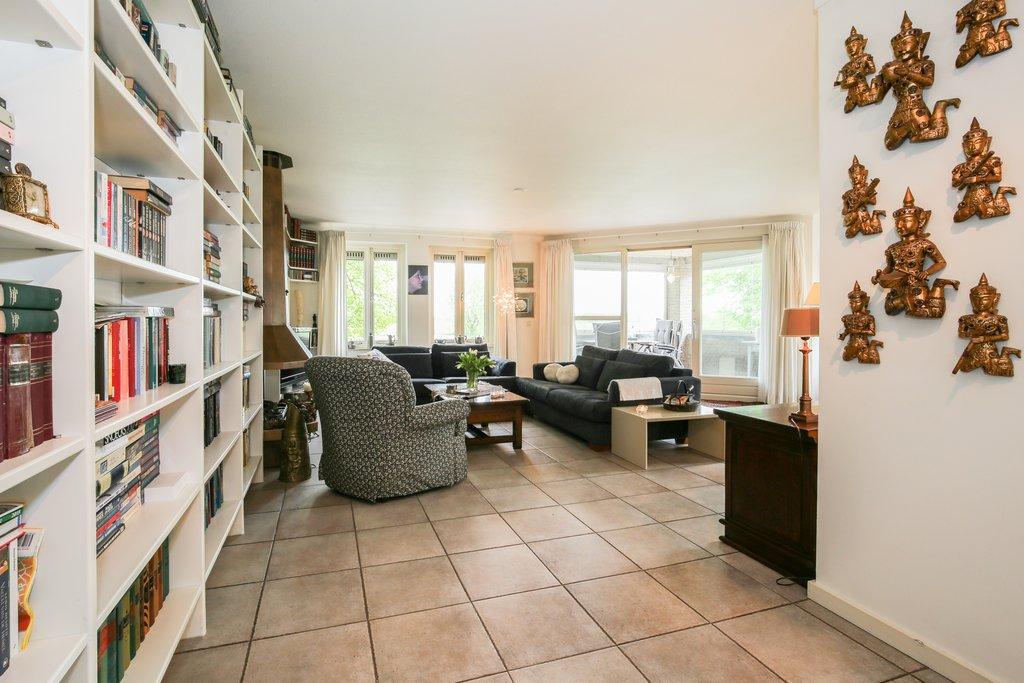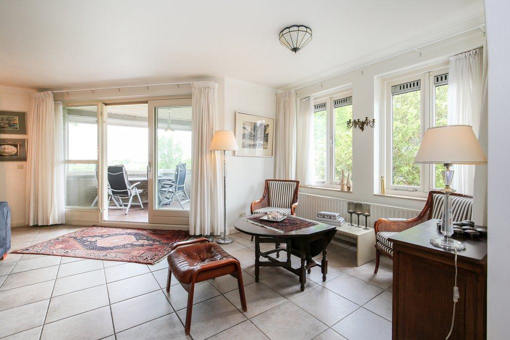 – Royale living van circa 64 m² met een sfeervolle gashaard en directe toegang tot het grote loggia met schuiframen en panoramisch uitzicht over de Maas en haar uiterwaarden.