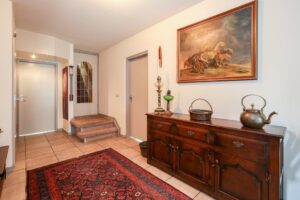 Eerste verdieping: via de privé-entree betreedt u de eerste verdieping van het appartement. U komt binnen in een ruime hal die toegang biedt tot alle vertrekken: