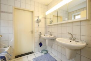 – Tweede badkamer, bereikbaar via de hal en de tweede slaapkamer, uitgerust met een douche, tweede toilet en wastafel.