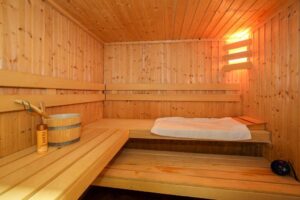 – Saunaruimte met voldoende plek voor ontspanning.