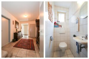 – Hal met garderoberuimte en separaat toilet voorzien van fonteintje.