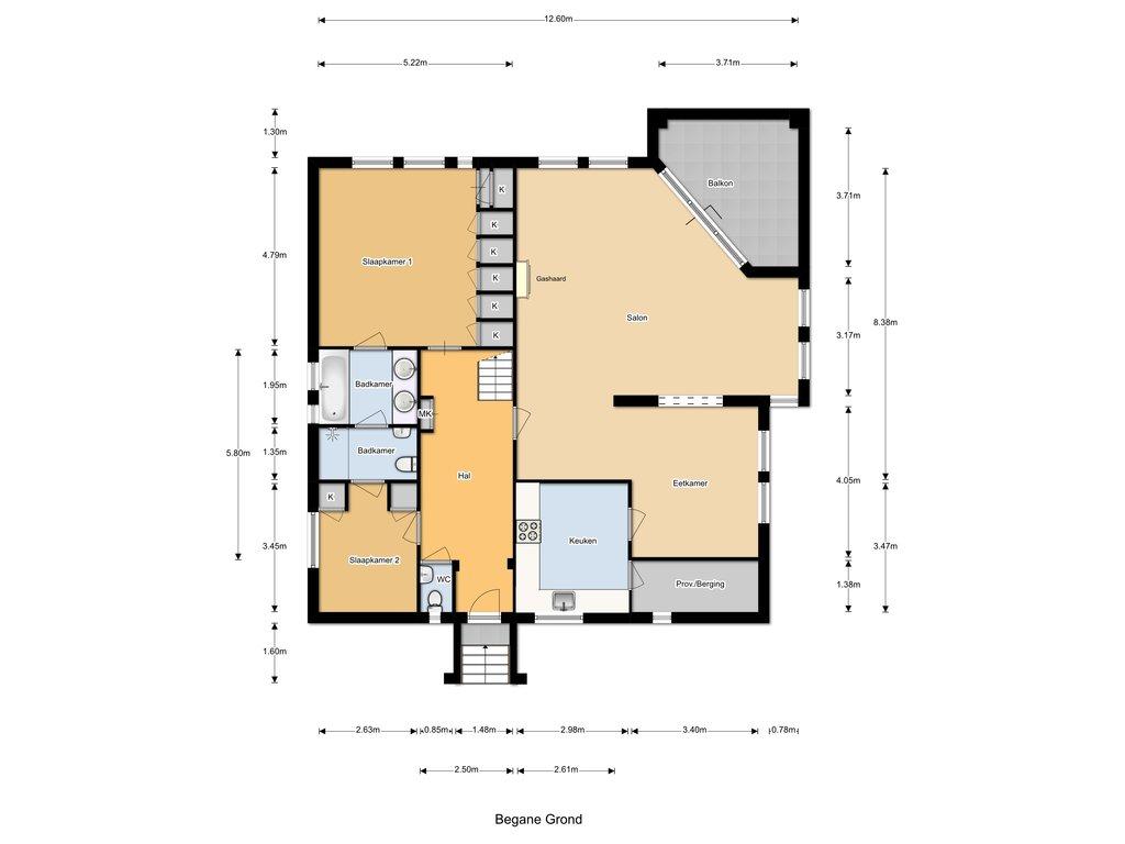 Begane grond: via een eigen entree met afsluitbare poort komt u binnen. Hier bevindt zich ook een handige fietsenberging. De trapopgang met traplift brengt u naar het appartement op de eerste verdieping.
