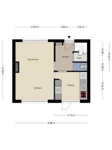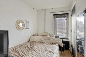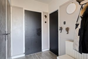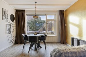 Binnen kom je in een lichte en prettige woonkamer met raampartijen aan zowel de voor- als achterzijde, waardoor er gedurende de dag een fijne natuurlijke lichtinval is. De ruimte is efficiënt en logisch ingedeeld en biedt voldoende plaats voor een comfortabele zithoek en een eettafel. Geen overbodige vierkante meters, maar een functionele leefruimte die prettig aanvoelt en eenvoudig kan worden aangepast aan persoonlijke woonwensen. Door de ligging van de woning zijn er bovendien goede mogelijkheden om de woonkamer en keuken te vergroten, bijvoorbeeld door middel van een uitbouw.