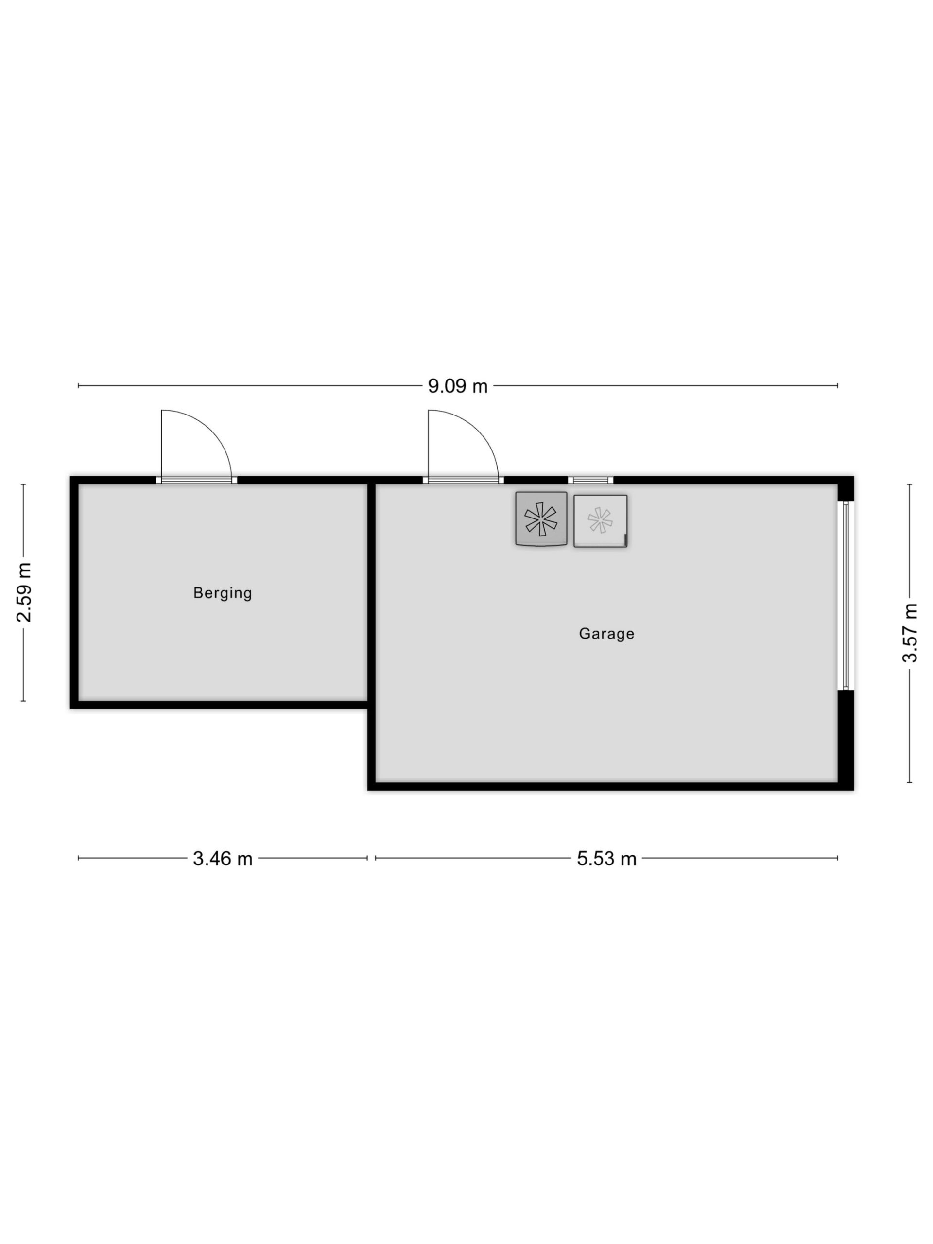 – Vrijstaande garage en berging met diverse gebruiksmogelijkheden.