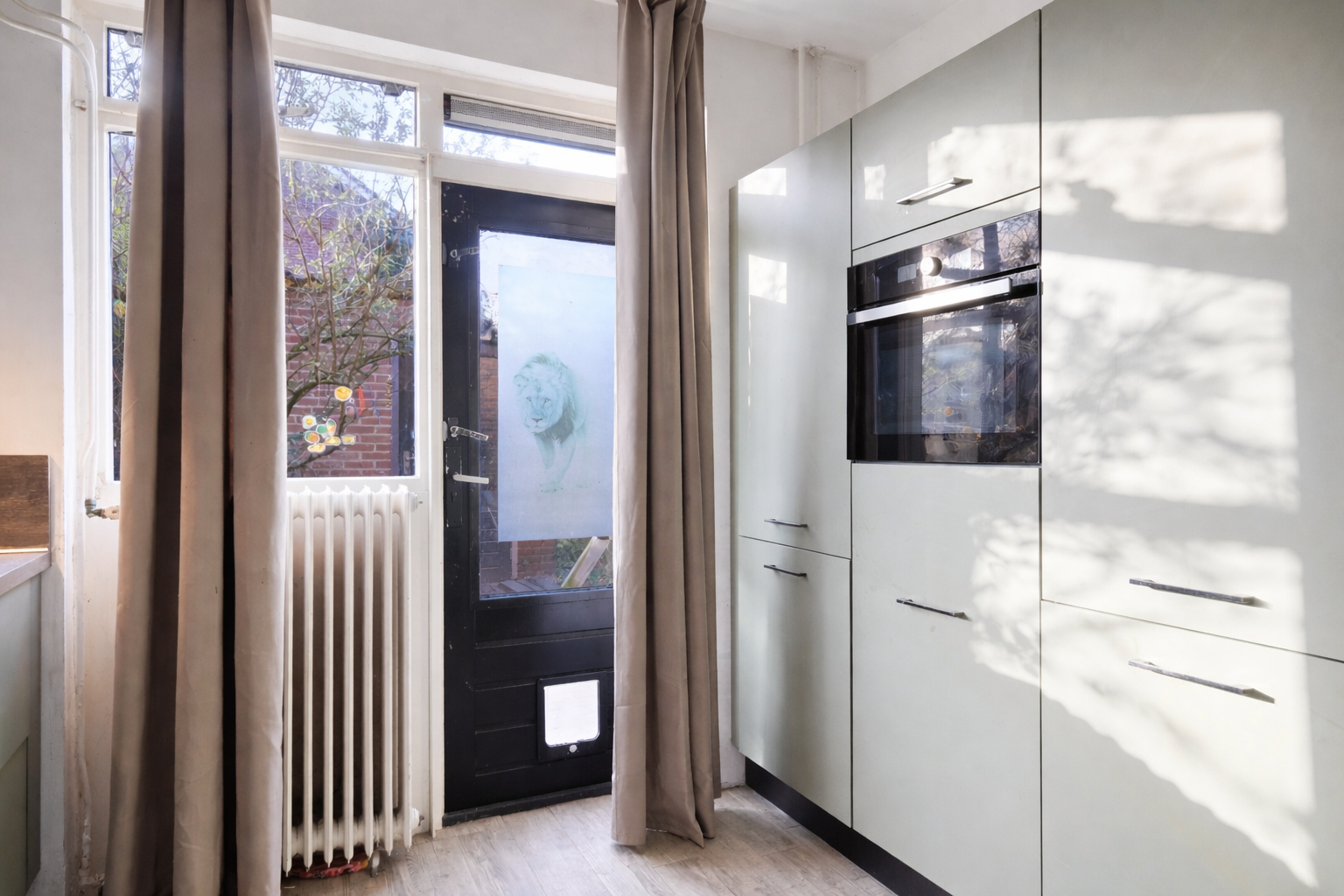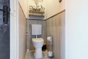 De gesloten keuken is in 2023 vernieuwd en uitgevoerd in een rustige groene kleurstelling. Praktisch ingericht met moderne inbouwapparatuur en directe toegang tot de tuin. Ook hier geldt dat samenvoegen met de woonkamer of uitbreiden richting de garage goed denkbaar is voor wie meer leefruimte zoekt.
