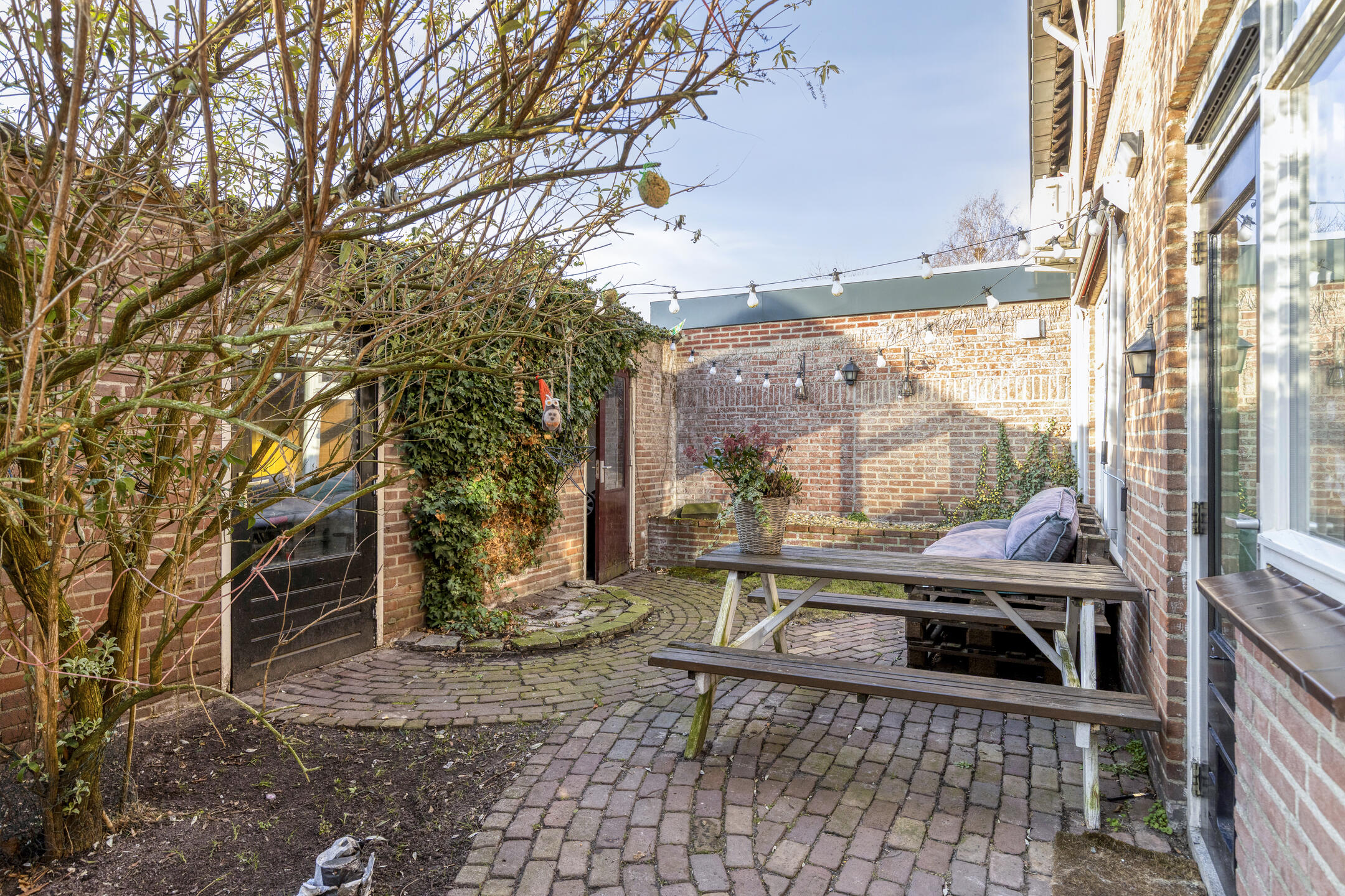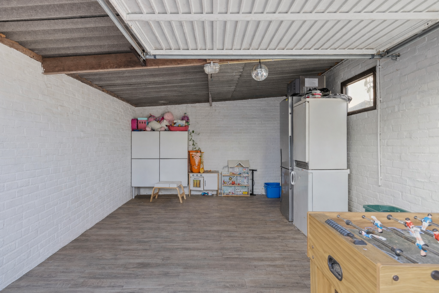 De achtertuin is onderhoudsvriendelijk en overzichtelijk, een fijne plek om buiten te zitten zonder veel onderhoud. De vrijstaande garage wordt momenteel gebruikt als opslag, maar biedt volop mogelijkheden als hobbyruimte, werkplek of als onderdeel van een toekomstige uitbreiding. Daarnaast is er naast de garage nog een extra berging aanwezig, ideaal voor fietsen en tuinspullen.