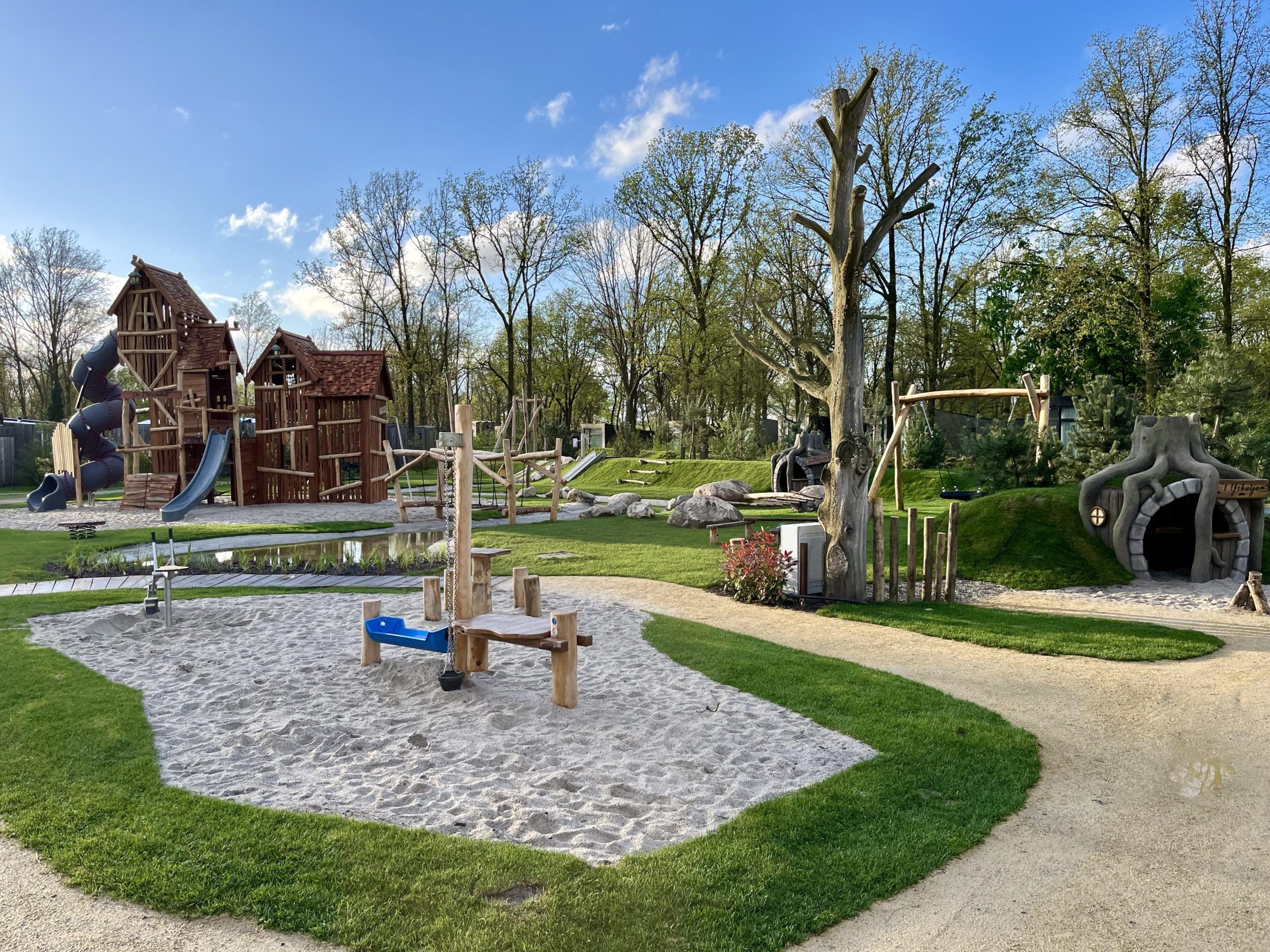 – Outdoor: speelavonturen dorp, spray/water park en airmountain springkussen