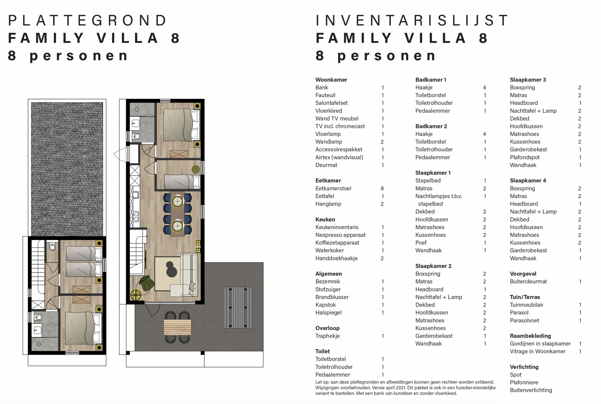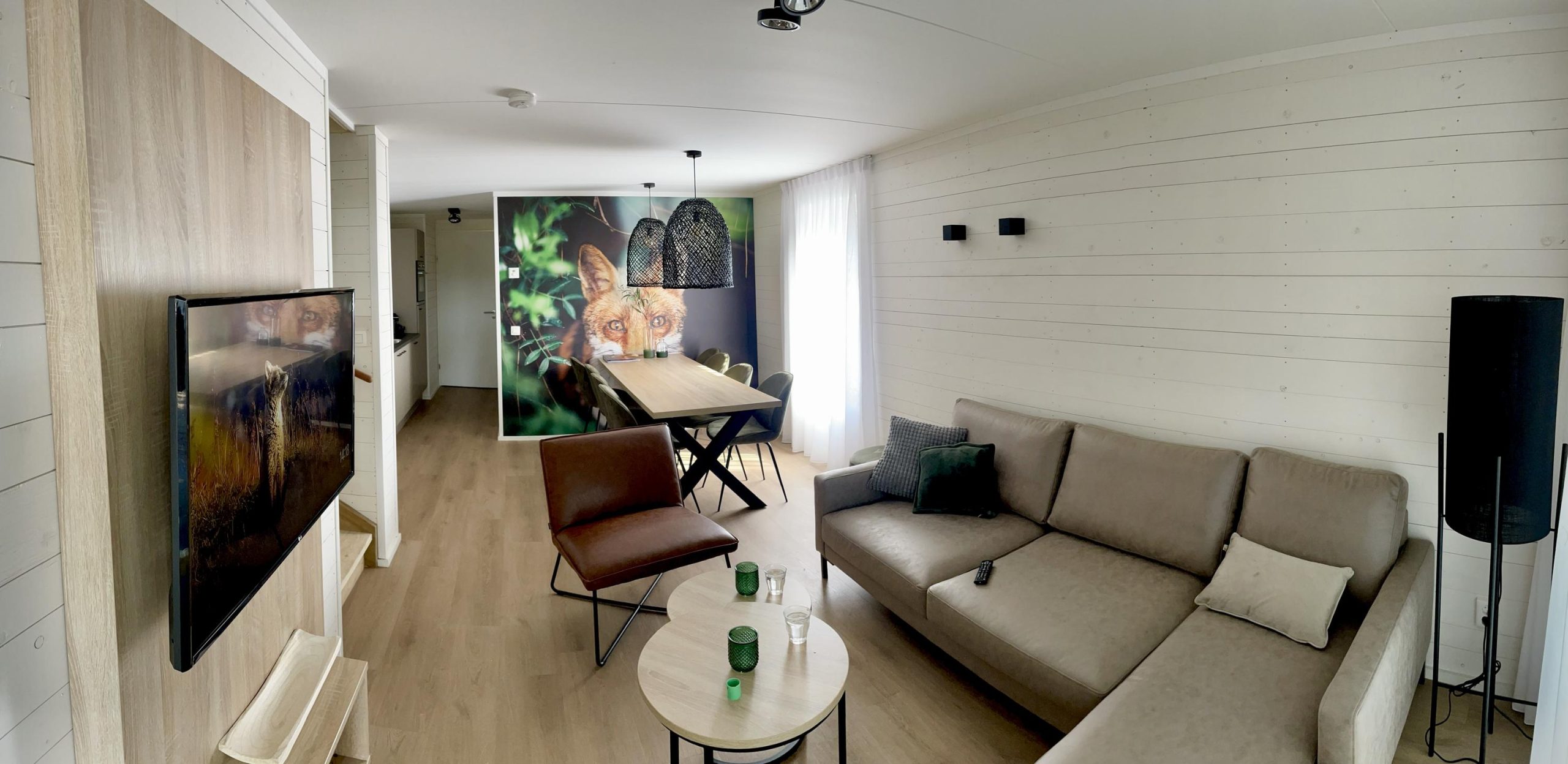 Deze moderne bosvilla uit 2022 is tot in de puntjes afgewerkt en biedt met een woonoppervlakte van 85 m² ruimte aan maar liefst 8 personen. De woning beschikt over vier comfortabele slaapkamers, twee luxe badkamers en een apart toilet. Dankzij vloerverwarming, airco met warmtepompfunctie en hoogwaardige isolatie is het hier in elk seizoen heerlijk vertoeven. De sfeervolle woonkamer biedt direct uitzicht op de groene omgeving en geeft toegang tot de overdekte veranda met hangstoel — jouw ultieme ontspanningsplek.