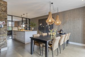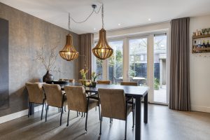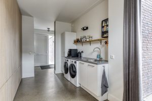 De royale leefkeuken aan de achterzijde vormt het hart van de woning en is een heerlijke plek om te koken, tafelen en samen te komen. Er is volop ruimte voor een grote eettafel en eventueel een werk- of studieplek. Dankzij de openslaande deuren loopt deze ruimte mooi over in de tuin. De luxe keuken is compleet uitgevoerd met een inductiekookplaat met geïntegreerde afzuiging, vaatwasser, koelkast, combi-oven en een kokendwaterkraan.