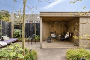 De fraai aangelegde achtertuin is met veel zorg en oog voor detail ingericht en heeft een gunstige ligging op het zuiden. Hierdoor geniet je hier gedurende de hele dag van de zon. De tuin is bereikbaar via een praktische achterom en voorzien van een elektrische zonneluifel. De houten berging met veranda vormt een mooie aanvulling en biedt een heerlijke plek om buiten te zitten of extra spullen op te bergen. Aan de achterzijde van het perceel is bovendien extra parkeergelegenheid aanwezig.