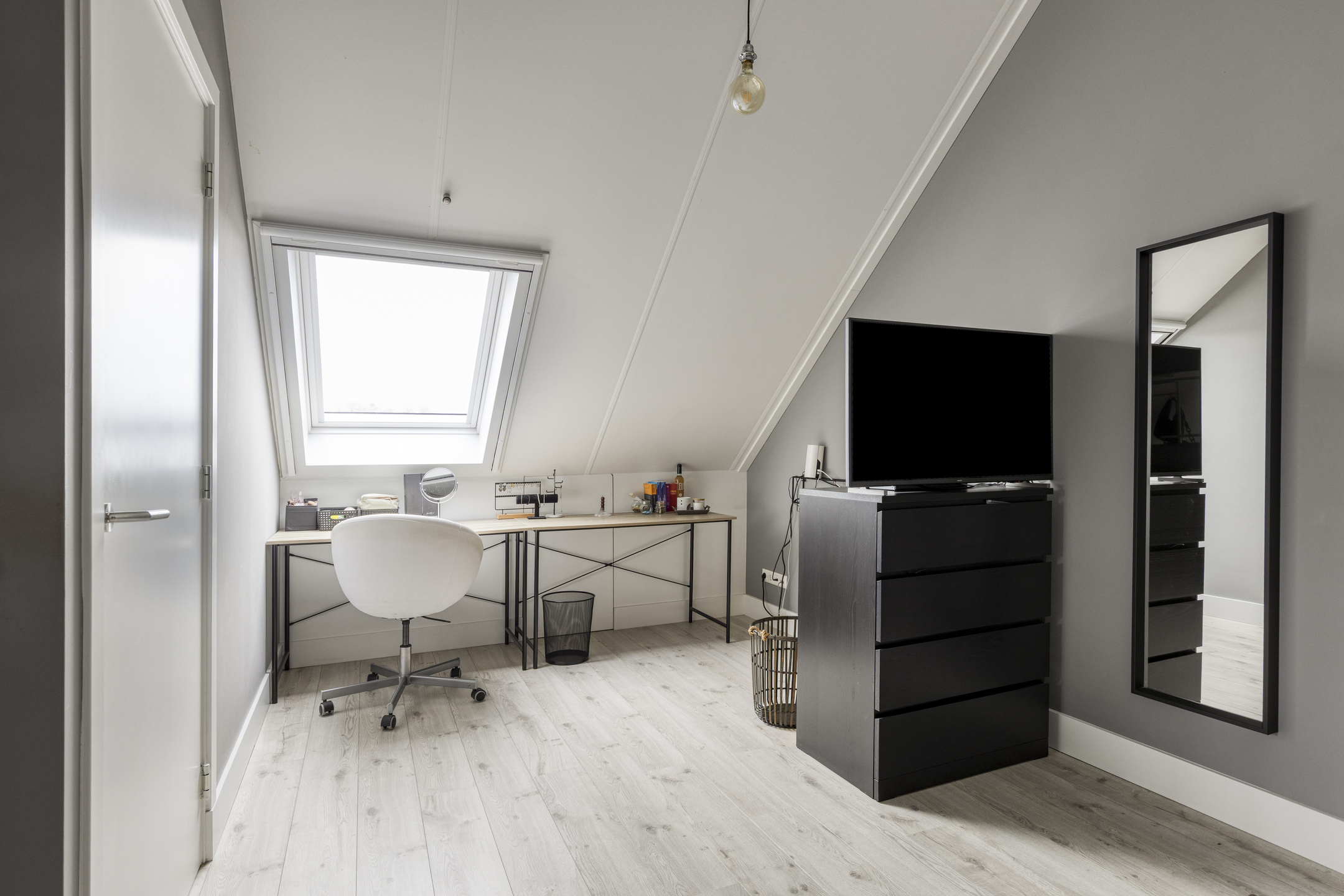 – De zolderetage is een royale ruimte met een groot dakraam en een aparte technische ruimte met aansluitingen voor witgoed. Indien gewenst is deze verdieping te gebruiken als slaapkamer, werkkamer of hobbyruimte. Daarnaast bestaat de mogelijkheid om de ruimte op te delen in twee volwaardige slaapkamers.